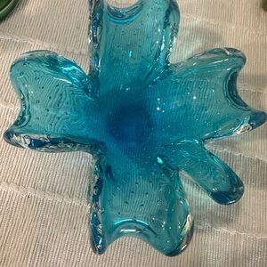 Murano Blue Glass Art Sculpture Flower Design