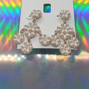 NWT Charter Club Chandelier Earrings pearls golden crystals prom wedding