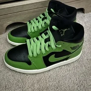 Experience the perfect blend of style and comfort with these Jordan sneakers, featuring a striking green and black colorway. The high-top design and iconic Nike Swoosh logo make these shoes a standout choice for sneaker enthusiasts. With a classic silhouette and bold color blocking, these sneakers are a must-have for any collection.