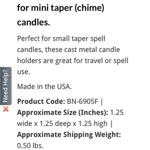 Cast metal holders for mini taper candles. Ideal for travel or spell use.