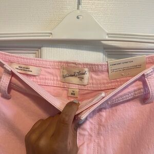 These Universal Thread jeans feature a chic flare and wide-leg design in a soft pink hue, perfect for adding a touch of elegance to your wardrobe. The high-rise waistband and tailored fit offer a flattering silhouette, while the cropped length adds a modern twist. Ideal for both casual and dressy occasions, these jeans are a stylish addition to any outfit.