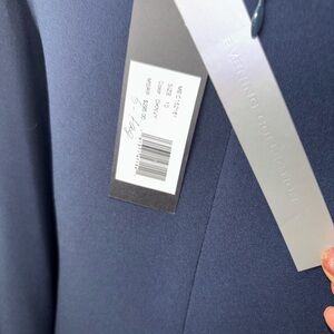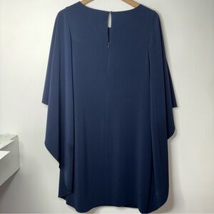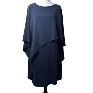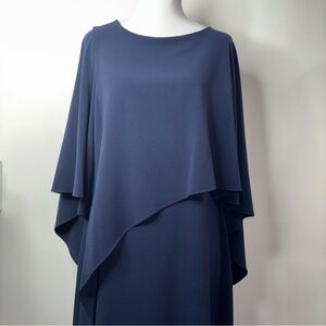 Halston Heritage Asymmetric Drape Crepe Dress Size 10 Navy Blue Cape Capelet Sleeve