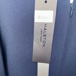 Halston Heritage Asymmetric Drape Crepe Dress Size 10 Blue Cape Capelet Sleeve