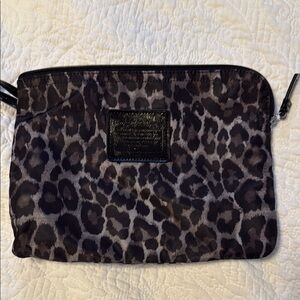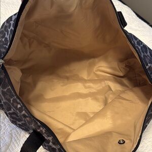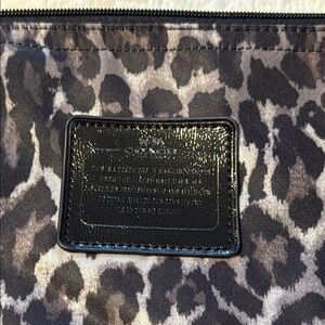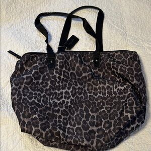This like new condition Coach tote bag features a sophisticated silver gray and black color scheme, perfect for everyday use. Crafted with durable materials, it offers ample space for your essentials while maintaining a stylish appearance. The tote's sleek design and sturdy handles make it a versatile accessory for any occasion. GETAWAY OCELOT PRINT LARGE PACKABLE WEEKENDER (COACH F77437)