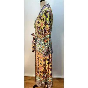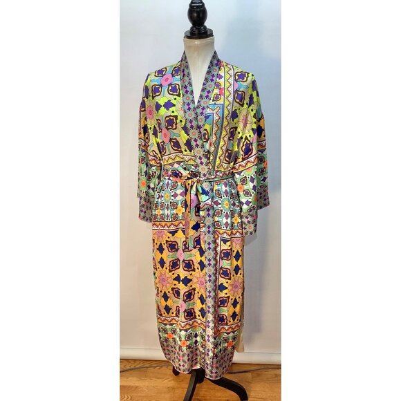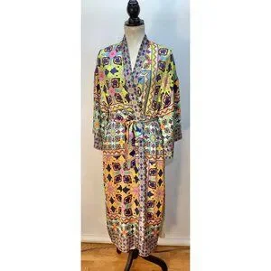 Zara Womens Size S Satin Colorful Long Kimono Robe Boho Festival