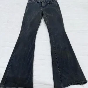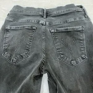 These black jeans from MOTHER feature a dramatic flare and wide leg design, offering a bold and stylish silhouette. Crafted with precision, they provide a sleek fit through the hips and thighs before expanding into a wide leg below the knee. Perfect for making a statement, these jeans are a must-have for any fashion-forward wardrobe.