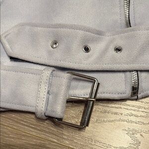 Blue Leather Moto Jacket Asymmetrical Zipper Belted Waist