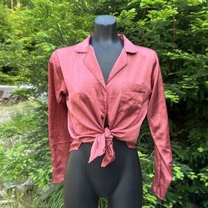 NWT Abercrombie & Fitch Silkie Long Sleeve Button up Top Dusky Pink size XS