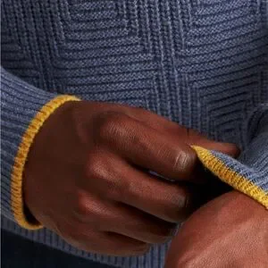 Soft and cozy blended yarn in allover diamond pattern texture stitch | Tipping at cuffs