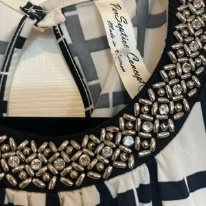 PerSeption Concept Black and White Sleeveless pattern beaded Blouse