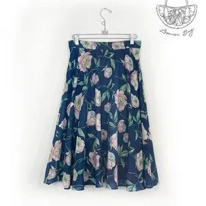 Add a touch of elegance to your wardrobe with this midi pleated flowy skirt featuring a timeless floral pattern. Crafted in a rich dark blue fabric adorned with delicate white flowers, this skirt moves beautifully with every step thanks to its lightweight and breezy design. The pleated silhouette flatters all body types and adds graceful movement, making it perfect for both casual outings and dressier occasions. Pair it with a simple blouse or a cozy sweater for an effortlessly chic look.