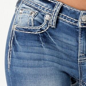 Currently selling on Miss Me website for $119 Mid-rise, dark-wash bootcut jeans
