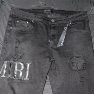 Experience the perfect blend of style and comfort with AMIRI's black skinny jeans. These jeans feature intentional distressing for a contemporary, edgy look. Crafted with precision, they offer a sleek silhouette that complements any modern wardrobe.