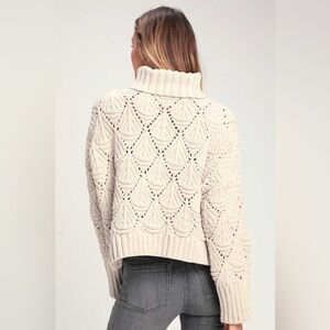Luxuriously soft chenille knit, with pierced detail that creates a mesmerizing pattern throughout, shapes this cozy sweater with a folded turtleneck, long sleeves, and a wide-cut, slightly cropped bodice. Ribbed knit trims the neck, sleeve cuffs, and hem.