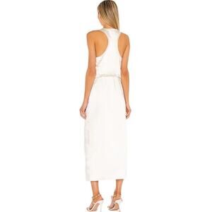 Revolve L'Academie Alicia Satin Midi Dress S Ivory Sleeveless Pleated Si…