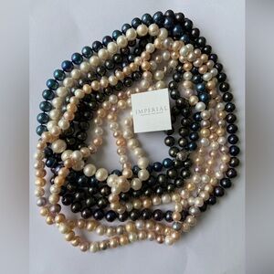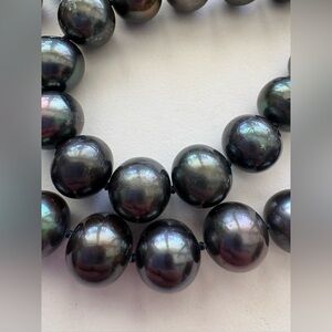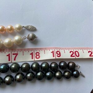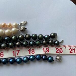 From my pearl collecting phase, bought these beauties but didn’t wear them often, listing as EUC. There are various lengths and colors in my closet, this listing is for the black 20” strand. Additional photos included to show the colors compared to other colors of pearls. About 10mm diameter