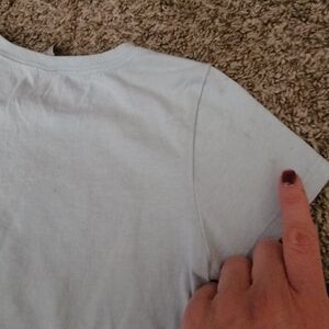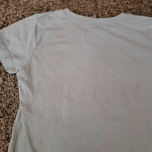This light blue girls tee from Great Wolf Lodge and Next Level Apparel showcases a playful heart and mermaid tail design in blues and pink color schemes. Crafted with short sleeves, it offers a comfortable fit for playtimes. This was worn many times and has some wear and multiple areas of slight discoloration (mostly on the back). My daughter loved wearing it since it's so soft and has mermaid and great wolf lodge on it so I thought another little one would still enjoy it. Size Medium girls 7/8. 60% cotton and 40% Polyester blend.