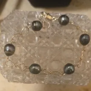 Hawaiian Tahiatian Black Pearl Infinity Bracelet