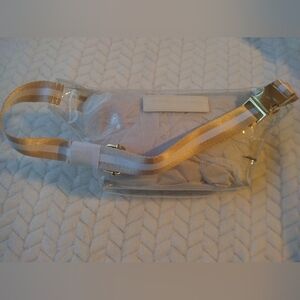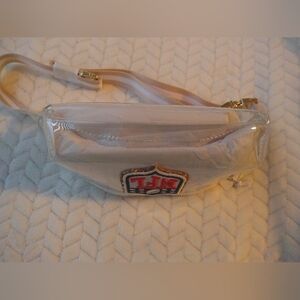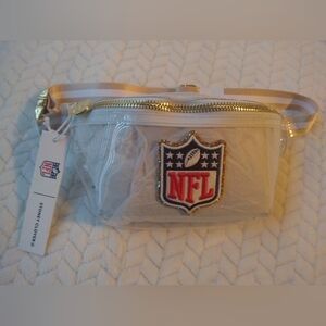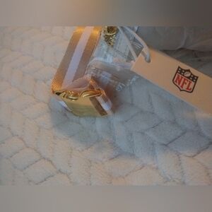 Stylish clear fanny pack featuring the NFL logo. Gold accents add a touch of elegance. White and tan strip, Perfect for game days and events. Level up your Bag on Game Day & Great for any team you love! Condition: New