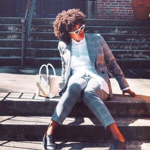 Chic plaid trousers with a classic black and white pattern. Ideal for versatile styling. Straight cropped fit with pockets. Matching blazer for sale as well Size is a 14Tall.