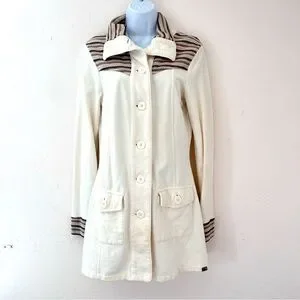 PRANA Women's Rowen Jacket Cream Waffle Knit Yoke Mid Length Fleece Coat Size S