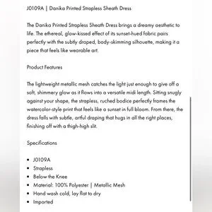 NWT Jewel Badgley Mischka Danika Printed Strapless Sheath Dress