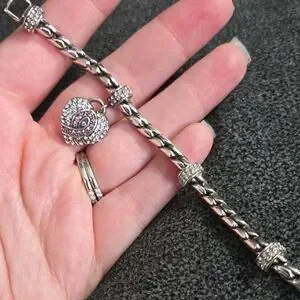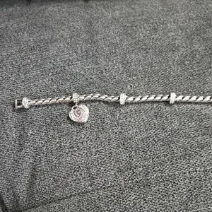Elegant silver bracelet featuring a heart charm with sparkling accents. Perfect for any occasion.