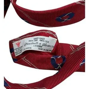 TURNBULL & ASSER Men's 100% Silk Necktie LUXURY Red Rope Life Buoy W:3.6" EUC