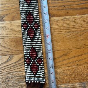 An easy-to-wear belt with colorful seed beads and a wood clasp ,The native pattern will further enhance your everyday coordinates.