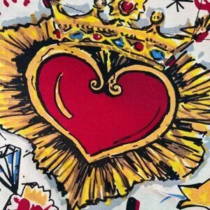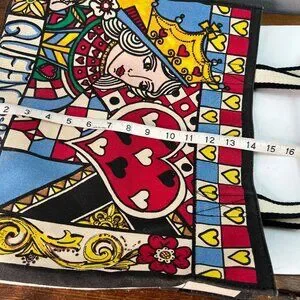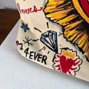 Stylish tote bag featuring vibrant Queen of Love and heart artwork. Lightweight and spacious for daily essentials with colorful design.