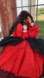 Elegant porcelain doll in a striking red dress with black lace details. Features a delicate face and intricate design. I can’t find a signature or any info on this. It was priced at $40 at the sale I got her at (I didn’t pay that). Her hat/veil is coming loose. Signs of wear. 9.25”