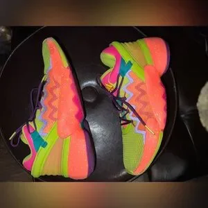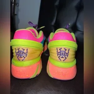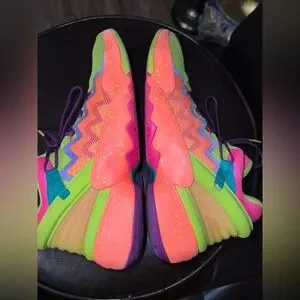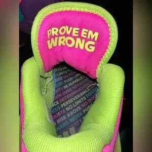 Awesomely unique color commitment and design.. Fair condition due to sole being a little worn..by appearance they look great..positive encouraging messages throughout inner sole and on the tongue.. comfortable..very much a stand out eye catching pair of sneakers
