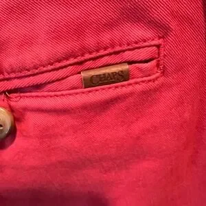 Experience the perfect blend of style and comfort with these Chaps red flat front shorts. Crafted from a vibrant cotton blend, they offer a classic look ideal for casual summer outings. The flat front design ensures a sleek and modern appearance. Measurements for rise, length, and inseam are shown. Smoke free home, new without tags.