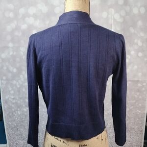 Cable & Gauge Women's Navy Blue Open Front Rayon And Polyester Sweater