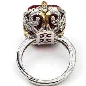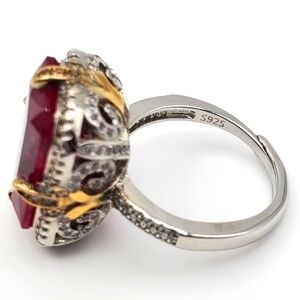 Im selling this 15CTW+ High Quality Radiant Cut Lab Ruby High Quality Czs 925 Ring. Its stamped S925 for sterling silver. Very heavy high quality craftmanship. 15 CTW Lab Ruby. High quality Czs with inticate designs. New with box. Size 7 resizeable up or down.