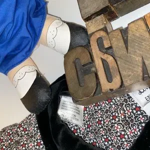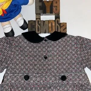 • Black velvet Peter Pan collar.