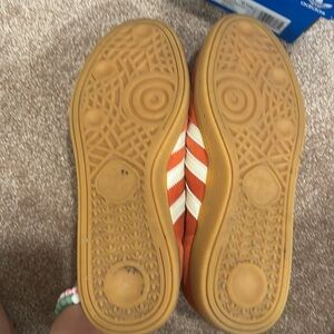 Adidas Handball Spezial sneakers they are used, but still in good condition. There is fading and some discoloration on the suede as it is typical with Adidas sneakers. There is also a small mark on the back. I don’t know what it is, but I’ve captured it in the photos. I have tried my best to capture the condition of the shoes in the photos. Please reach out to me if you have any further questions. It does come with the original box if you need proof of purchase, please message me. These are a men’s size 6, which is equal to a woman’s size 7 in the brand.