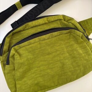 BAGGU fanny pack – an easy way to go hands free while still supporting your BAGGU bags obsession. BAGGU sling bag silhouette that’s surprisingly spacious with two main compartments and an interior zip pocket. The tonal logo nylon strap can be worn crossbody style, over your shoulder or around your waist for a versatile fit. Made from durable, heavyweight recycled nylon.