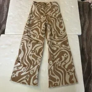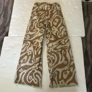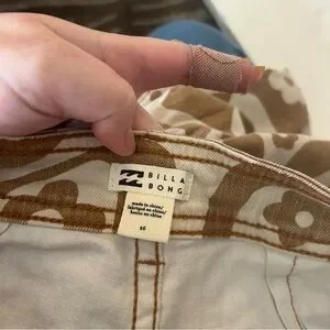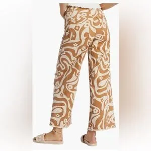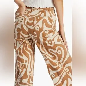 Billabong free fall high waisted wide leg pants orange white 70’s. Floral print