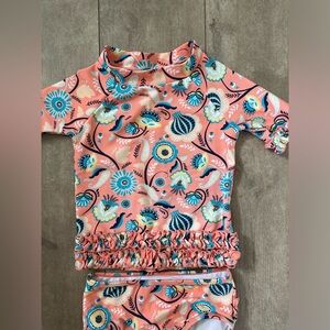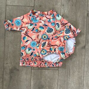 RuffleButts Paisley Paradise Two-Piece Rashguard Swimsuit Size 18-24 months