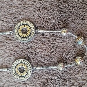 This elegant necklace features a stunning combination of gold and silver tones, perfect for adding a touch of sophistication to any outfit. Its intricate design makes it a standout piece in any jewelry collection.