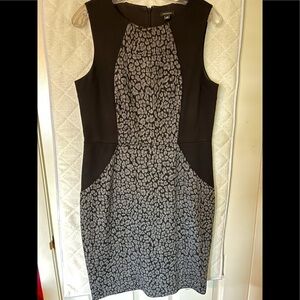 Ann Taylor Professional Dress, in gray animal print with black accents. Invisible back zipper, knit fabric. Excellent condition from Nonsmoking, pet free home. Easy to wear under a blazer or jacket.