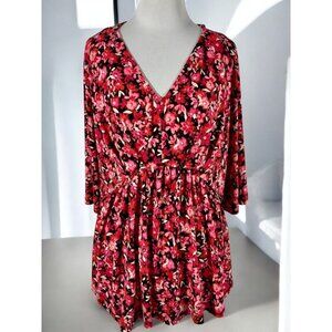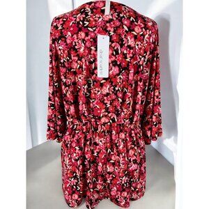 Dear Scarlett Womens Pink Floral Medium Blouse Short Sleeve V-Neckline NEW