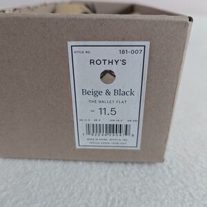 NWT/NIB Women's Rothys The Ballet Flat In Beige And Black, Size 11.5