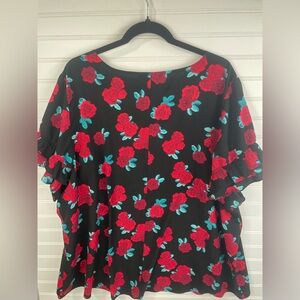 Lane Bryant Black Red Rose Tiered Ruffle Sleeve Plus Size Blouse 26 Women’s EUC
