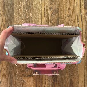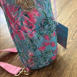Embrace vibrant style with this Lilly Pulitzer cooler backpack, showcasing a lively pink and blue color palette. Designed with a tropical print, it offers a chic and functional way to carry your essentials. Perfect for adding a splash of color to your everyday adventures.