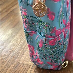 Lilly Pulitzer Pink and Blue Cooler Backpack with Tropical Flair