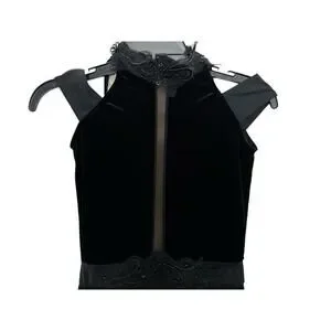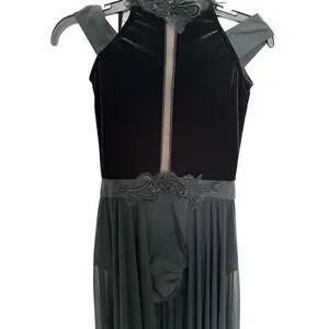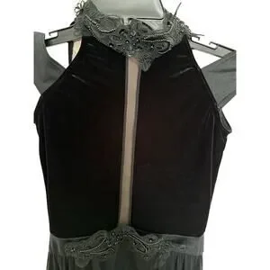 WEISSMAN Dance Costume black velvet maxi applique dress WASTE OF TIME 10984 SA