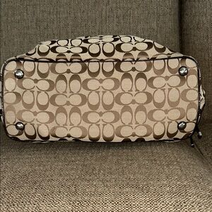Stylish Coach tote with signature pattern. Features dual handles and spacious interior.