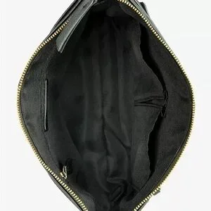 Hardware tone varies by color, 2 exterior front zip pockets & back slip pocket, interior zip & slip pockets